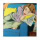 Trabalhos de arte de uma banda desenhada do vintage. Jovem mulher desolada que coloca no sofá com cabeça no braço que está sobre a página da sociedade do jornal. Weeping silenciosamente
