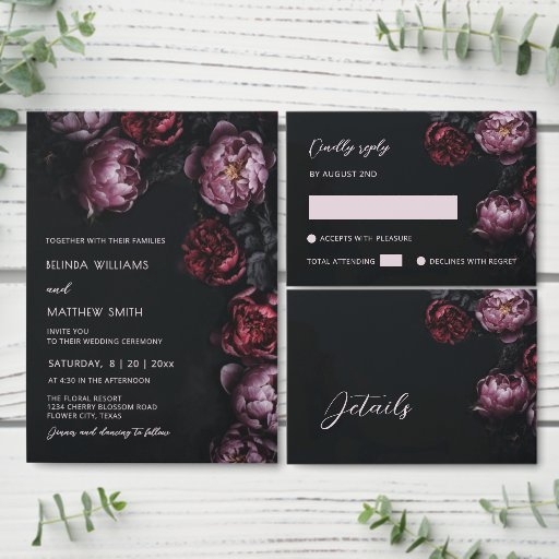 Menu 3D Purple and Dark Red Peony Wedding