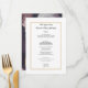 Um design elegante, porém moderno, com um quadro fotográfico moderno de um lado e a informação do menu de janto do segundo lado.
