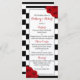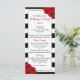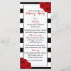 A coleção de luxo moderna de chic apresenta um histórico clássico de listras brancas e pretas, acentuado com belas rosas vermelhas de rubi e uma falso moldura de folha de prata. Esses cartões de menu são fáceis de personalizar e serão o acessório perfeito para qualquer casamento, chá de panela, festa de aniversário, celebração de noivados ou qualquer outra ocasião especial.