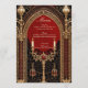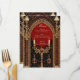 A escura elegância do estilo gótico. O fundo é um vermelho profundo e rico que oferece um contraste dramático aos sotaques dourados brilhantes. O design do estilo gótico combina elegância e misticismo.