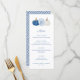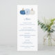 Jarra de Gengibre Clássica com abóboras azuis e brancas no design do cartão de menu para combinar com meus convites e papelaria na mesma linha. Elementos de aquarela pintados à mão por mim antes de serem digitalizados. Por favor, note que você pode alterar a cor de contraste no verso (atualmente azul escuro) alterando a cor do fundo no verso (sob as caixas de personalização de texto, clique ou toque para personalizar ainda mais e entrar na ferramenta de design).