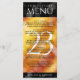 Adicione sofisticação às 23ª comemorações do aniversário do topaz imperial com este menu de janto, que contém uma elegante letra e um confete hexagonal no fundoso fogo laranja-amarelo-vermelho e fundo preto. Personalize com nomes de casal, datas de casamento, detalhes do local, itens de menu e mensagens de parabéns. Design © W.H. Sim. Mais informações em zazzle.com/expressionsoccasions