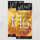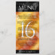 Adicione sofisticação às comemorações do aniversário de casamento do topaz no 16º ouro com este menu de janto, que contém uma elegante inscrição e um confete hexagonal no fundo do fogo amarelo-alaranjado-vermelho e fundo preto. Personalize com nomes de casal, datas de casamento, detalhes do local, itens de menu e mensagens de parabéns. Design © W.H. Sim. Mais informações em zazzle.com/expressionsoccasions