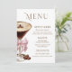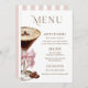 Um cardápio de aniversário para uma dama especial com um design sofisticado e lúdico, com um elegante vidro espresso martini revestido com uma camada espumosa, e grãos de café são amarrados com um arco de chiffão rosa. Estes pormenores contribuem para a alegria da indulgência e da celebração! Personalize este menu de aniversário muito especial com seus detalhes. Se precisar adicionar ou remover linhas de texto, abra o menu de edição do cheio selecionando "editar usando a ferramenta design" encontrada na parte inferior do modelo design.
