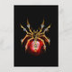 Aranha mecânica, com pá-pá de ouro, engrenagens de latão e uma lâmpada de vidro vermelha sobre fundo preto. Estilo Steampunk.