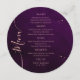O Místico Rainbow Deep Plum Sun Moon Stars Space Wedding Cards Apresenta estrelas simples sobre fundo de ameixa profundo com os detalhes do menu no centro do moderno script de caligrafia de pêssego. Personalize editando o texto nas caixas de texto fornecidas. Projetado pelo Evco Studio www.zazzle.com/store/evcostudio