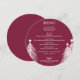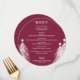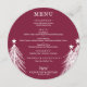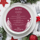 Um cardápio de jantar redondo e elegante com cranberry e árvores de Natal brancas apresenta os detalhes do seu cardápio em letras sofisticadas. Perfeito para uma festa de Natal ou qualquer evento especial com jantar sentado.
