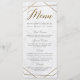 Crie seus próprios cartões de menu de casamento personalizados com Arte Geométrica Moderna Dourada Deco em Mármore usando estes modelos fáceis de usar da WowWed. Estes cartões de menu geométricos apresentam caligrafia dourada falsa, fundo de mármore branco e tipografia elegante. No verso, há um padrão geométrico dourado em um fundo cinza.