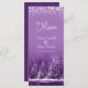 Lindos pinheiros roxos de inverno e reflexo de lago, menu de janto de casamento ou menu especial de evento. Edite este menu de 4 cursos com suas próprias palavras. Ideal para casamentos no inverno ou eventos roxos ou ao lado do lacre. © Design e pintura original de aquarela e guache por Sarah Trett. www.sarahtrett.com para www.mylittleedenweddings.com no zazzle.