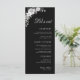 Este elegante menu de casamento, com preto gótico e branco floral, texto personalizado e caligrafia elegante, faria uma maravilhosa adição à sua festa! Altere facilmente o texto clicando na opção "personalizar este modelo".