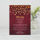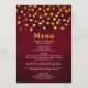Este cardápio de casamento rústico e cheio mostra folhas de ouro em um fundo vermelho angustiado. O texto combina fontes itálicas e serif para uma aparência moderna e na moda. Isso será perfeito para os casamentos outono do outono.