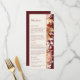 Este design de cardápio floral de burgundy é um conjunto de sonhos que incorpora a essência do charme vintage e da elegância moderna. Com flores e folhas do outono em cores do outono, acentuadas com bordas geométricas douradas, nosso design oferece uma estética simples, mas cativante, perfeita para sua celebração do verão ou do outono. Contra um fundo escuro e bege, a nossa seleção curada de convites, papelaria e decoração exuda calor e beleza natural, criando uma atmosfera convidativa para o seu dia especial. Explore a coleção hoje e comemore seu dia de casamento com a beleza do outono. Para coordenação personalizada ou qualquer pergunta, por favor, não hesite em alcançar.