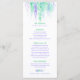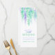 Cartão de menu com arte de vinha verde em cascata azul. Menu moderno de casamento ou evento especial com tipo de vinha floral abstrata em aquarela. Edite este menu com o seu próprio menu e pratos do jantar. Menu de arte de aquarela solta abstrata moderna em roxo, verde e azul pálido. Ideal para casamentos florais e casamentos temáticos de cores modernas verde e roxo ou outros eventos temáticos de vinha e flores. Você também pode adquirir uma opção de cartões individuais mais grossos neste design. © Desenho e pintura em aquarela por Sarah Trett. www.sarahtrett.com para www.mylittleedenweddings.com na Zazzle.