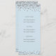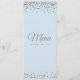 Design elegante do menu do partido de recepção de casamento com o azul de gelo dos confetes do brilho do falso e texto de prata do costume. Imprima seus família e amigos com este design à moda e moderno.