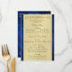 Adicione um toque da elegância a seu evento com nosso menu azul do casamento do vitral do rolo do imperador. Precise mais sala? Adicione o texto à parte traseira apenas batem o botão da personalização. Nós usamos as pias batismais da liberdade & do Colister.