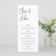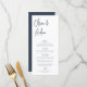 Projetado para combinar com nossos convites de casamento de Script Manuscrito Moderno. Uma bela design baseada na tipografia, com um toque minimalista, com um roteiro manuscrito azul-marinho moderno e uma letra serif clássica. Personalize com seus itens de menu usando oito campos de texto personalizados.