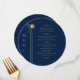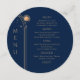 Mystical Blue Sun Moon Stars Espaço Cartões de Menu de Casamento Espacial apresentam estrelas douradas simples em um fundo azul com os detalhes do menu no centro em um script de caligrafia dourada moderno. Personalize editando o texto nas caixas de texto fornecidas. Projetado para você pelo Evco Studio © em www.zazzle.com/store/evcostudio