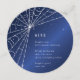 Uma elegante teia de aranha e estrelas diamantadas contra um fundo azul escuro. Funciona em papel cartão quadrado ou redondo. Todo o texto é totalmente editável, para que você possa adicionar ou excluir texto e alterar o estilo/tamanho/cor/layout da fonte de acordo com as suas necessidades. Este design está disponível em outras cores, em papel cartão de diferentes tamanhos e também em convites e acessórios coordenados.