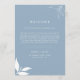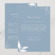 Acolha seus convidados com calor e estilo com o "Cartão de Boas-Vindas e Cronologia de Folhas de Galhos Minimalista Moderno em Azul Poeira" da Visual Studio no Zazzle! Este cartão sofisticado apresenta uma tela azul poeira calmante adornada com folhas de galhos brancas minimalistas, estabelecendo o tom para uma celebração memorável.