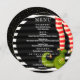 Cartões de menu redondos apresentam as pernas em pontas riscadas e botas verdes em listras pretas e brancas e pontos dourados e seus detalhes em letras brancas quicas. Perfeito para uma festa de Natal, recepção de casamento, janto de ensaio de casamento, festa de aniversário ou qualquer evento especial com um janto de férias. Personalize facilmente com o menu e os detalhes do seu janto. MUITAS CORES disponíveis em nossa loja.