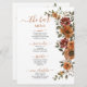 Elevem sua experiência de jantar de casamento com nosso cartão de menu de dois lados, com uma bela laranja queimada no solo, ferrugem, terracota, design floral marrom. Um lado destaca cocktails de assinaturas, enquanto o outro apresenta o menu de bar. Explore nossos itens de coordenação disponíveis na loja para uma aparência coesa e na moda. c) O Feliz Cat Studio