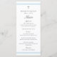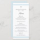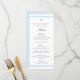 O clássico cartão de menu elegante do batismo é um moderno, limpo, que apresenta listras azuis pastéis e uma cruz mínima com texto editável para cinzas.