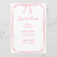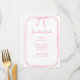Este elegante modelo de menu de estilo manuscrito apresenta um design desenhado à mão clássico com uma ilustração de arco caprichosa no topo. É apresentado num esquema de cores rosa e branca divertido, perfeito para dar o tom para uma celebração única e feminina.