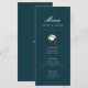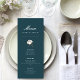 Bem-vindo ao nosso cartão de menu elegante moderno de algodão verde, um delicioso acréscimo à celebração do seu casamento como noiva e noivo. Com seu fundo verde-teal e texto branco crocante, este cartão de menu exala elegância e sofisticação, tornando-o a escolha perfeita para o seu dia especial.