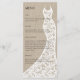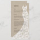 Um belo vestido de noiva em uma pá de fundo acentua este cardápio para o chá de panela rústico, country ou vintage.
