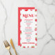 Menu folha única, tamanho: 10,16 x 22,86 cm, papel: Semi-brilho Básico