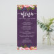 Menus De Casamento Floral Com Cor Chic Editável Por Aquarela. Com a fonte do estilo de script de pincel de tendência! ~ Altere facilmente a cor do plano de fundo da aquarela, basta clicar em "Personalizar" Role para baixo através do texto e imagens até ver a área da cor de fundo e selecione a cor personalizada. Certifique-se de clicar no "verso" e fazer o mesmo.