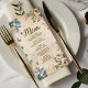 Aprecie seus convidados com nosso belo Menu de Casamento Botânico Boho Autumn Wildflower! Este elegante cardápio apresenta um charmoso design botânico, adorado com flores silvestres e folhagem brancas em tons quentes de outono, complementando perfeitamente a elegância rústica do tema do seu casamento. Feito com atenção aos detalhes, nosso menu mostra as ofertas elegantes do seu banquete de casamento de uma forma na moda e sofisticada. De aperitivos a entradas, sobremesas a bebidas, cada prato é belamente apresentado ao lado de sua descrição, tantalizando as papilas gustativas de seus hóspedes e estabelecendo a palco para uma experiência memorável de jantar. Com opções de texto personalizáveis, você pode personalizar o menu com seus detalhes de casamento, incluindo os nomes da noiva e do noivo, a data do casamento e qualquer informação adicional que você gostaria de incluir. Seja uma mensagem especial para seus convidados ou uma nota sobre acomodações na dieta, nosso menu garante que todos os aspectos de sua celebração sejam cuidadosamente comunicados. Impressos em estoque de cartolina de alta qualidade, nossos menus oferecem estilo e durabilidade. Cada menu é uma adição impressionante ao seu decoro de mesa, projetado para melhorar a qualidade de sua recepção e deixar uma impressão duradoura nos seus convidados. Elevem sua experiência de jantar de casamento e criem uma apresentação coesa e elegante com nosso Menu Boho Autumn Botanical Wedding Wedding. Deixe a beleza da natureza inspirar alegria e celebração enquanto você compartilha este dia especial com seus entes queridos.