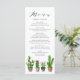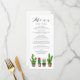 Adicione um sotaque boho à sua capa de tabela com este cartão de menu personalizável. Apresenta suculentos e cactos com coloração aquosa. Personalize adicionando seus detalhes. Este cartão de menu de cacto é perfeito para casamentos de verão, chás de panela, chás de fraldas, festas de aniversário e outros eventos.