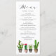 Menu Boho Potted Succulents and Cactus Summer Wedding