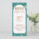 Boho Ranch Wedding Turquoise Faux Leather Program Menu faz parte da nossa Coleção Boho Ranch Wedding. A parte frontal da sua placa de programa/menu inclui a lista de programas de celebração do dia. Completamente personalizável para seu dia especial. O apanhador de sonhos tarugas com flores e penas é uma bela maneira de impressionar os seus convidados com este cartão de programa divertido e memorável. A parte de trás do seu cartão de programa tem um fundo ocidental giro em um motivo de couro azul-turquesa e apresenta os títulos personalizáveis do menu Casamento e itens de menu. Inclua este belo cartão Boho Ranch Western Wedding Program/Menu nas suas placas de carregador em frente a cada convidado. Combine-o com qualquer da nossa papelaria da Coleção de Casamentos Boho Ranch, festa e decoração de mesa para um Casamento Boho Ranch completo, e procure seu casamento ou festa.