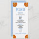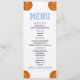 Este é um menu de comida de chá de fraldas do tema basquete. rapaz chá de fraldas cardápio comida entree bebe cardápio de mesa de sobremesa