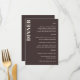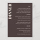 These personalized dinner menu signs in brown help guests easily follow the meal courses at a wedding reception, rehearsal dinner, or formal celebration. Customize the layout with your menu details to coordinate with your table settings, place cards, and signage. The clean, modern typography works well for plated dinners, multi-course meals, and catered events where clarity and style both matter. A great choice for couples planning a polished reception and looking for signage that feels cohesive and intentional.