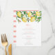 Limões de aquarela com folhas verdes brilhantes e cartões de menu cor rosa para flores para corresponder aos meus convites e artigos de papelaria na mesma faixa.