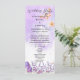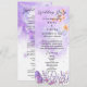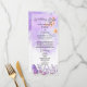 Adicione um toque de encantamento ao seu dia especial com o Menu de Casamento com Aquarela Rústica de Borboleta Azul Elegante. Este design deslumbrante apresenta delicadas borboletas-monarca roxas claras voando graciosamente entre flores lavanda e dourado-rosa, criando uma atmosfera rústica encantadora. As cores suaves lilás e turquesa se misturam perfeitamente com efeitos de aquarela elegantes, tornando-o perfeito para um casamento de conto de fadas, chá de bebê, quinceañera ou festa de aniversário de 16 anos.