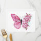 Arranjo de flores de borboleta cor-de-rosa com cereja japonesa cor-de-rosa floresce em fundo branco.