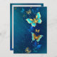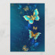 Ouro voador, borboleta de joias em fundo textural azul. Design com borboletas.