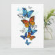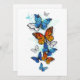 Borboleta azul-clara e voadora morfo e borboleta-monarca laranja num fundo branco. Morpho. Borboleta monarca. Design com borboletas.