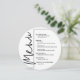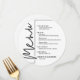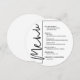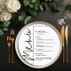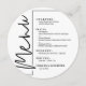 Um cartão redondo de janto preto e branco apresenta as suas opções de menu em letras brancas quic, perfeito para uma recepção de casamento moderna, janto de ensaio de casamento, festa de aniversário ou qualquer evento especial com um janto sentado. Personalize facilmente com suas opções de janto e detalhes. Mais cores e tamanhos em nossa loja.