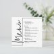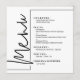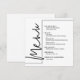 Um cartão de menu preto e branco quadrado apresenta as suas opções de menu em letras brancas quic, perfeito para uma recepção de casamento moderna, janto de ensaio de casamento, festa de aniversário ou qualquer evento especial com um janto sentado. Personalize facilmente com suas opções de janto e detalhes. Mais cores e tamanhos em nossa loja.