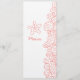 Menu moderno simples frente e verso do comensal da recepção de casamento do estilo das ondas do mar da praia com estrela do mar/arte seastar no branco alaranjado e torrado cor-de-rosa coral. Tirado excepcionalmente e projetado por Sarah Trett.