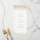 Design elegante do menu do partido de recepção de casamento com texto branco e feito sob encomenda Dourado dos confetes do brilho do falso. Imprima seus família e amigos com este design à moda e moderno.