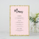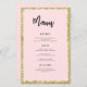 Projetado para coordenar com a nossa coleção de casamento Rosa e Dourada Glitter, esta placa de menu personalizável que corresponde apresenta uma borda dourada com fundo rosa. Para personalização mais avançada deste design, clique no botão "PERSONALIZAR" acima. Por favor, note que o brilho é como efeito impresso e não como pedaços físicos de brilho. Por favor, entre em contato comigo para qualquer pergunta!