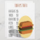 Um panfleto para um menu temático de hambúrguer para um evento escolar, arrecadação de fundos ou qualquer outro evento que precise de um menu.