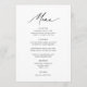 Informe aos seus convidados o que há no menu com este elegante cartão de menu 5x7, com um script preto e um design elegante.
